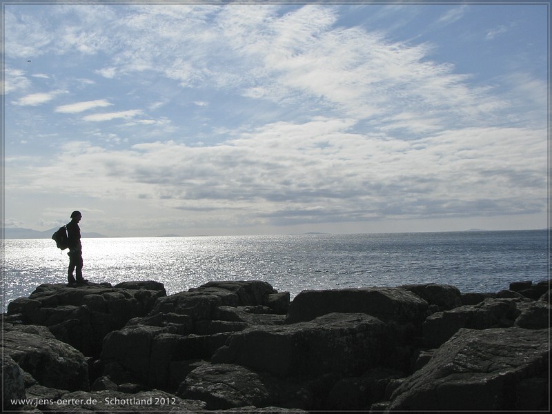 Hm zum Frühstück gibt es eine Runde Regen und wir nutzen die Zeit für eine sehr informative Führung durch die Tallisker Destillerie. Nettie unser Guide versprüht reichlich schottischen Charme 🙂 Sie erklärt uns der Regen heute seie sehr willkommen, da sie mit ihrer Produktion am Quellwasser hängen und es derzeit einfach zu trocken ist. Da ja eine Flasche mit dem Flieger zu transportieren immer ein Problem darstellt, nehme ich mir eines der schönen Longsleeve mit. Inzwischen hat das Wetter aufgeklart und es ist toll sonnig. Der Wind allerdings ist recht kalt. Das hindert uns aber nicht daran am Loch Dunvegan gegenüber der Seehundkolonie Stellung zu beziehen und den Tieren ein wenig beim sonnen zuzuschauen. Ein Besuch bei Skye Silver ist unumgänglich und so habe ich zu meinem Ring nun ein passendes Geschmeide für den Hals. Weiter auf Duirinish fahren wir raus zum Neist Point und wandern ganz raus bis zum Leuchtturm. Es ist einfach traumschön hier und die Insel der Wolken macht ein mal mehr ihrem Namen alle Ehre! Überall an den Klippen nisten Möwen, auf den Hügeln tummeln sich die Schafe und wenn man genau hinhört, hört man das Geträller der Lerchen zwischen dem Möwengeschrei. Nur die Wale, die man hier oft zu sehen bekommt, machen heute wohl eine Pause.