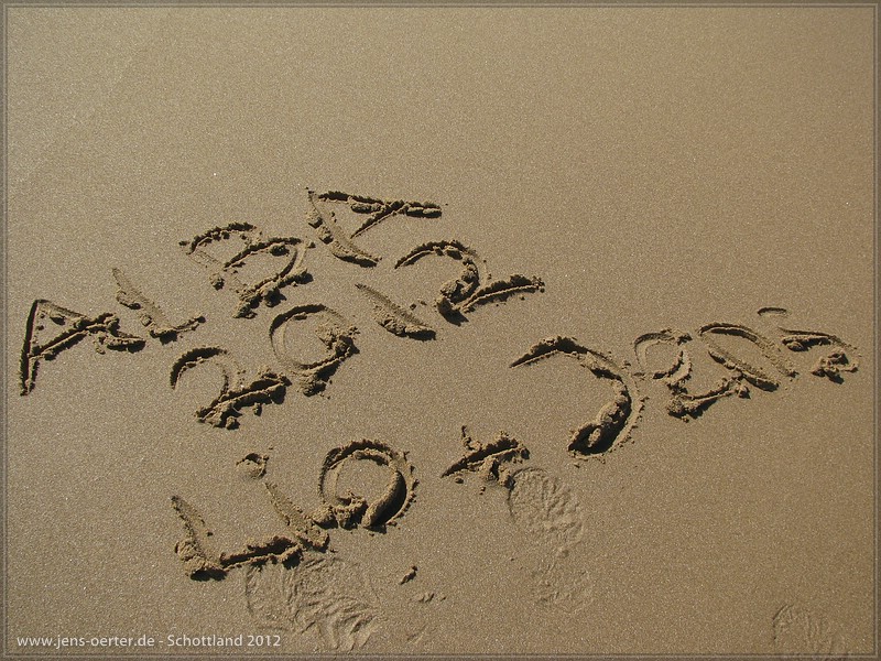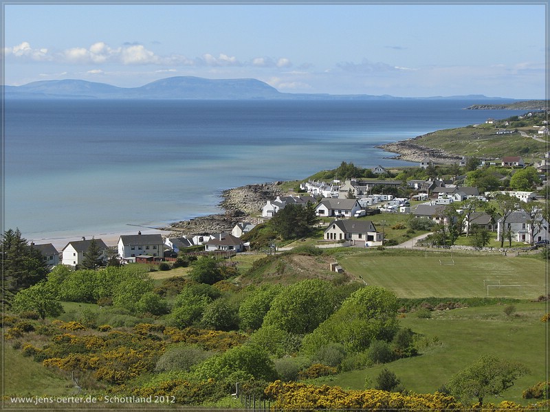 Wie in aller Welt kann das schon Montag sein? Heute erstmal alles gemächlich, die Tour von gestern steckt mir mächtig in den Knochen. Nach einem netten Plausch mit Gordon&Vanessa und einer letzten Knuddelrunde mit den Hunden verabschieden wir uns mit dem Entschluss hier bestimmt nochmal hinzufahren. Wir fahren raus zum Redpointbeach und laufen eine Runde entlang des Strandes und der Landzunge. Was hat man hier eine Aussicht! Danach fahren wir gemütlich weiter nordwärts und machen einen Zwischenstopp am Loch Maree, der sein Prädikat ‘schönster See’ auf jedenfall verdient. Einen Piclnickstopp legen wir noch gegenüber Gruinard Island, auf der Seeadler ausgesetzt wurden, die wir aber leider nicht zu Gesicht kriegen. Die Insel ist mit gutem Grund verlassen, wurde hier doch während des 2. Weltkrieges mit Milzbrand experimentiert und die Insel hochgradig verseucht. Zwar ist sie 1990 offiziell als unbedenkich eingestuft worden, leben will aber trotzdem niemand dort, ach was…