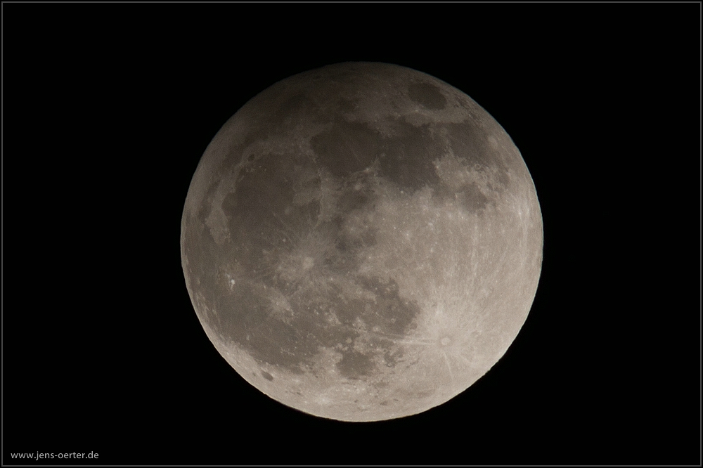 Ich habe an diesem Abend ertmals mein neues 300/f4 L IS in kombination mit 2 1,4-fach Extendern ausprobiert. (max. Brennweite 940mm). Da die Anstahlung der Sonne von vorne kam (Vollmond) konnte man die Kraterlandschaft nicht so gut erkennen da keine bzw. wenig Schatten entstanden. Beim nächten Halbmond mit wolkenfreiem Himmel werden ich es noch einmal probieren.