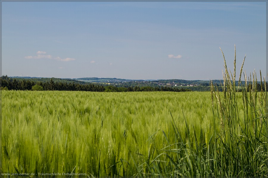 Am Sonntag 4. Mai starten wir Heinz, Lioba und ich zur einer Wanderung in den Hunsrück. Unser heutiges Ziel der Wanderparkplatz Oppenhausen in der Nähe von Boppard am Rhein. Von dort aus starten wir unsere heutige Tour »Traumschleife Ehrbachklamm« (17km, 570hm). Auf einem Plateau geht es erst entlang endloser Gerstefelder, nach einem Kilometer steigen wir ab ins Ehrbachtal.