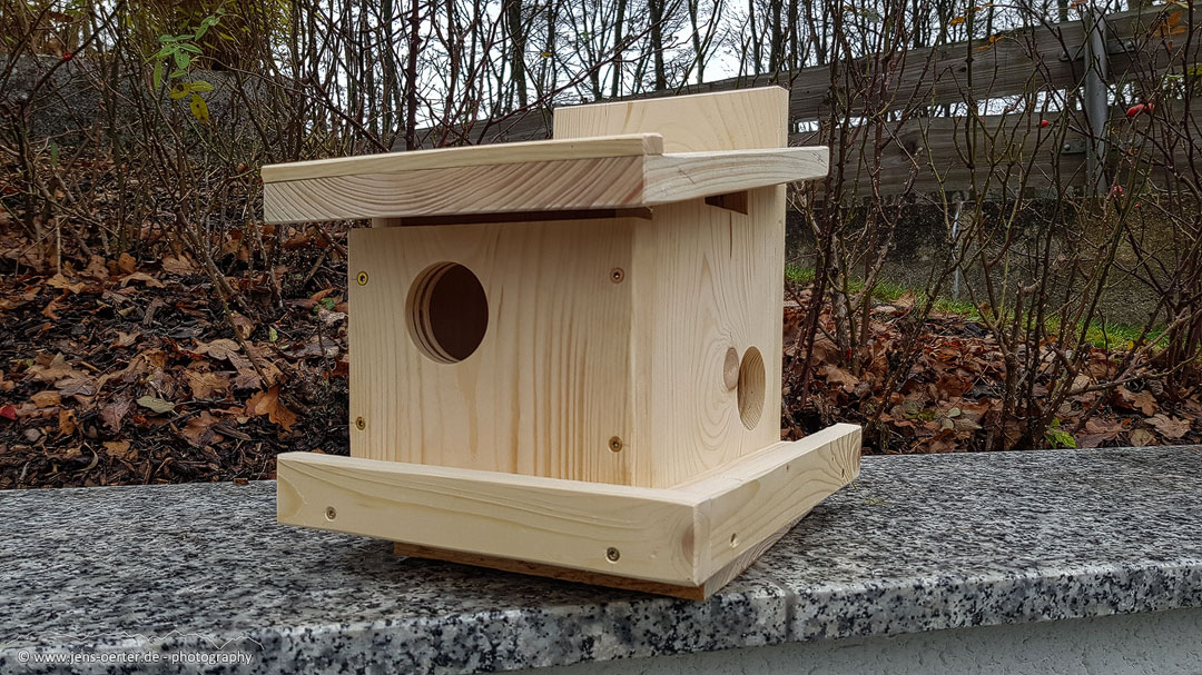 Für die dunkle Jahreszeit habe ich mir ein kleines Projekt für die heimischen Eichhörnchen vorgenommen. Vor zwei Jahren hatte ich schon einmal eine Futterbox gebaut die von den kleinen Rackern gerne genutzt wird. Nun habe ich gedacht es ist Zeit für Weitere und einige Übernachtungs-/Aufziehhilfen.
