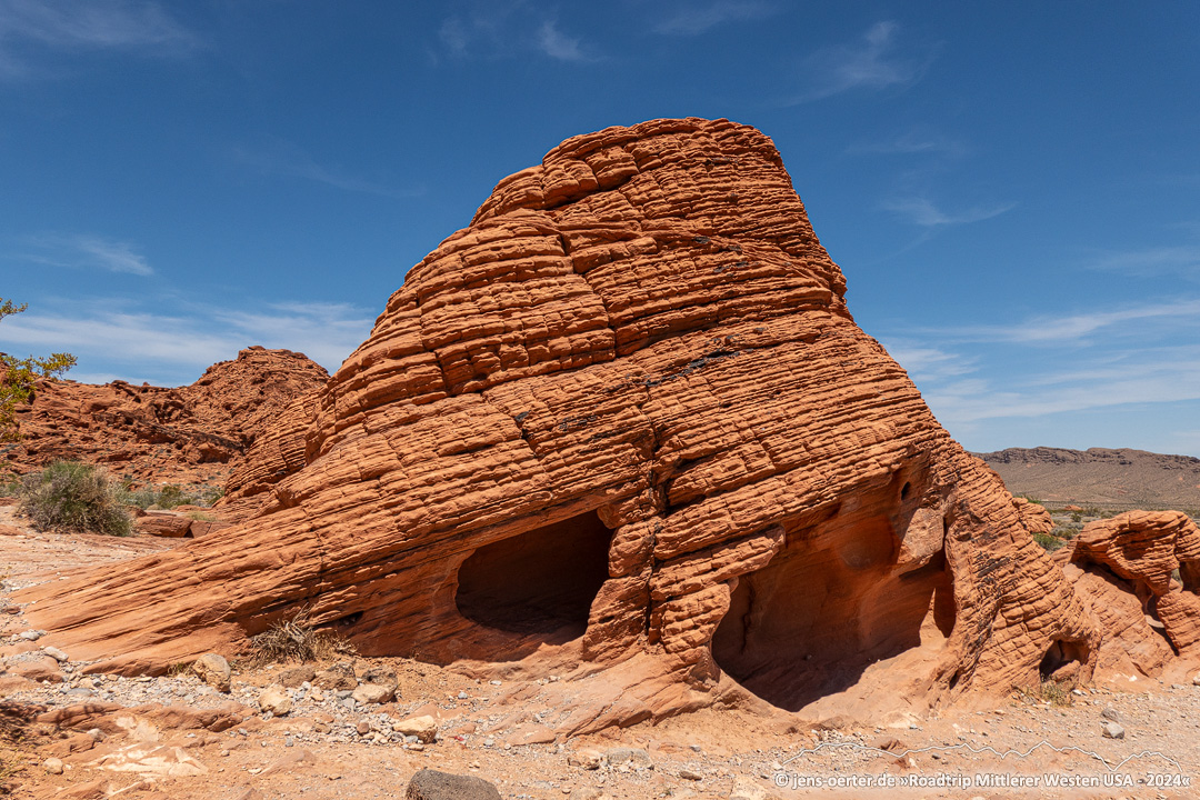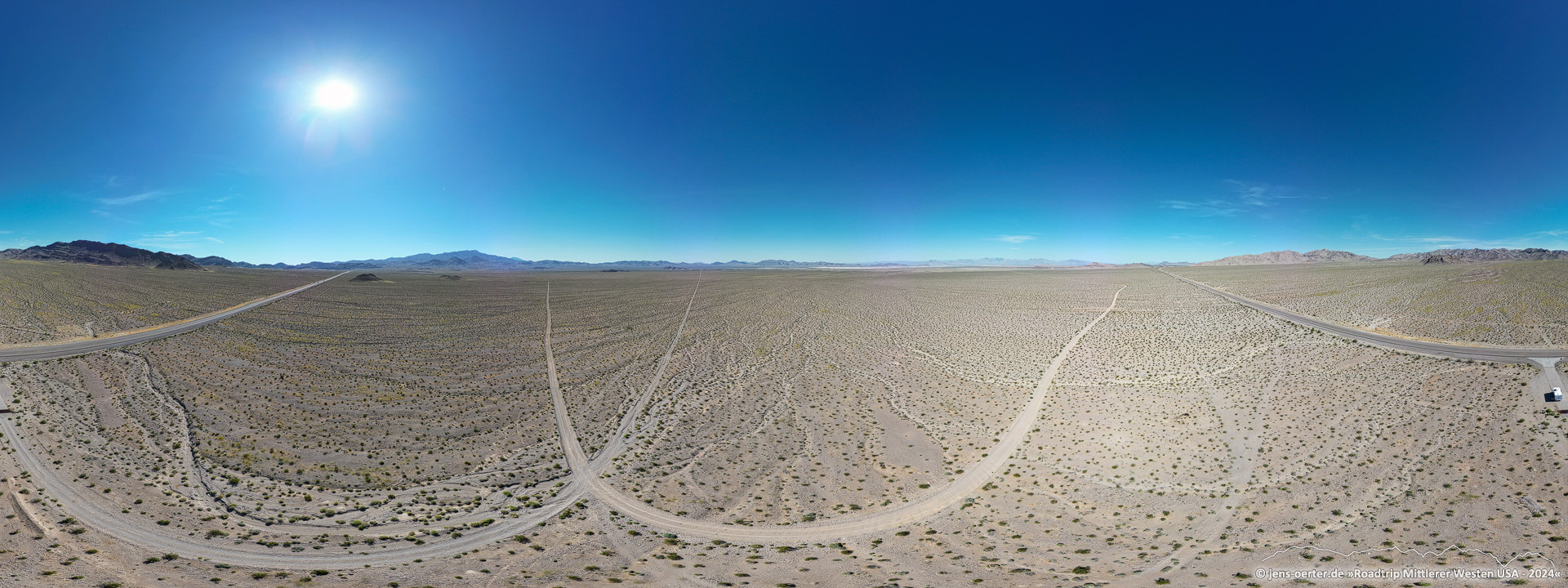 Vom Riverbend RV Park geht es durch endloses Farmland mit Obst aller Art und Nüssen. Da Sequoia wegen Baustellen und Straßensperren schwer zu erreichen ist, fahren wir Richtung Death Valley. Hinter Backersfield machen wir eine Pause in der Big Red Barn. Danach noch ein weiterer kurzer Boxenstopp zum Tanken in Tehachapi. Den ersten Richtigen Fotostop machen wir beim Red Rock Canyon. Eine sehr coole Ecke, jedoch auch schon sehr heiß. Es dominieren viele rot und orange und bizarre Felsformen. Es wird nur ein kurzer Spaziergang, aber es sieht einfach fantastisch aus. Dankenswerterweise verhindert der Wind, dass man in der Hitze dahin schmilzt. Wir fahren weiter über Trona durch ziemlich menschenleere Wüstenlandschaften. Links und rechts von uns ragen Berge auf – aber wir fahren durch einen Hitzekessel mit vielen ausgetrockneten Seen. Schließlich erreichen wir den Death Valley Nationalpark. Am Towne Pass erklärt uns ein Schild bitte, die Klimaanlage auszuschalten, um das Überhitzen des Fahrzeugs zu vermeiden – ein guter Hinweis!