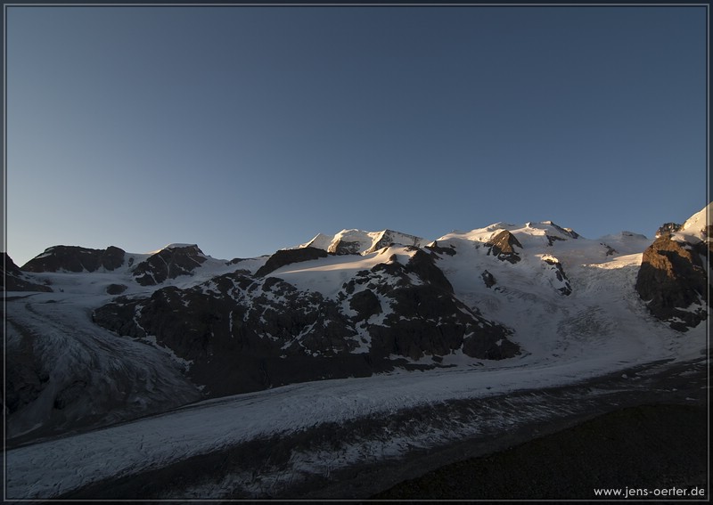 Außer uns sind nun noch acht Franzosen auf der Hütte eingetroffen. Das Abendessen ist okay. Um 20Uhr schlagen 10 völlig fertige Hochtourengeher in der Hütte ein. Fast regungslos sitzen oder liegen die Leute eine Stunde Eingangsbereich rum. Krass! Wir haben Glück und so werden die Neuankömmlinge in ein anderes Zimmer verfrachtet und wir können gut schlafen – den die Nacht ist kurz. Frühstück 3Uhr.